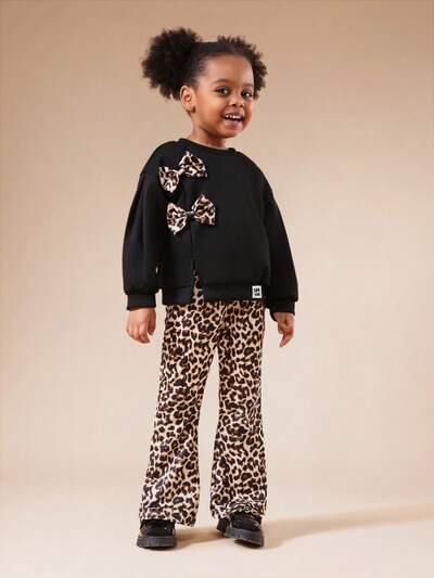 黒のスウェットシャツとヒョウ柄のフレアパンツのセット-45%