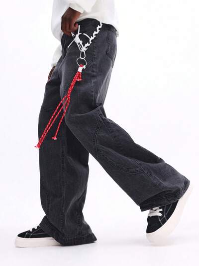 ユーティリティポケット付きワイドレッグバギーデニムジーンズ-40%