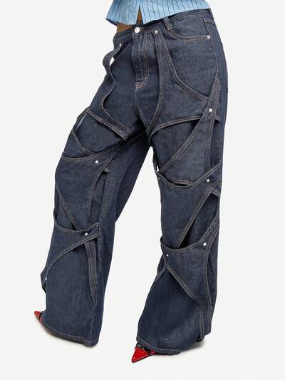 SUMWON WOMEN ローライズ スタッズ ストレートレッグ ジーンズ(ベルト付き)
