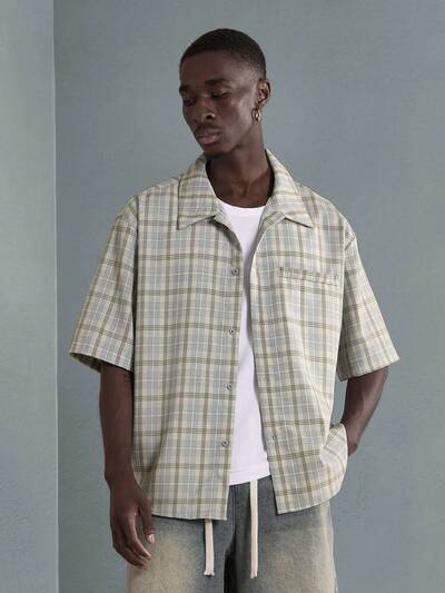 チェック柄 リラックスフィット 半袖 ボタンアップシャツ新しい