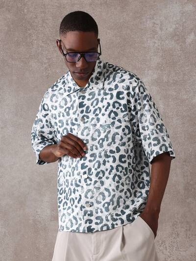 ボックスフィット 半袖 ヒョウ柄 ボタンアップシャツ-50%