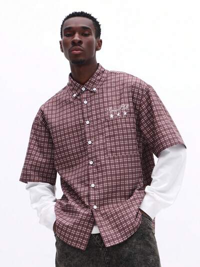 チェック柄プリントのポケットディテールがヴィンテージスタイルのボタンダウン半袖シャツ