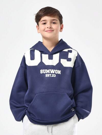 センターポケットとロゴ付きナンバープリントパーカー-50%