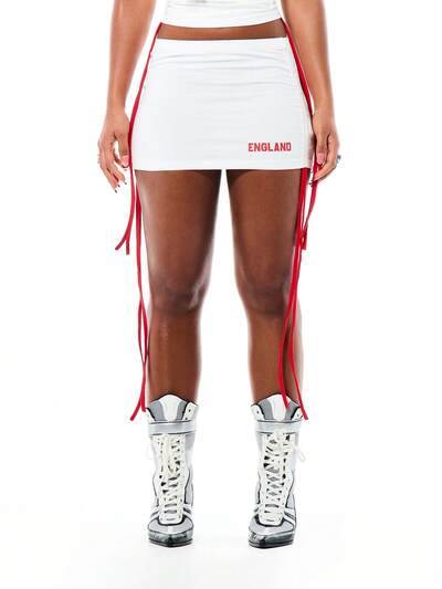 SUMWON WOMEN イングランド国旗プリント レッドタイ ディテール ローライズ ミニスカート ホワイト ボディコン フットボール ユーロカップSUMWON WOMEN スパンコールディテールのボディコンスネークプリントミニスカート