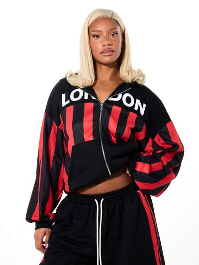 SUMWON WOMEN コントラストストライプの赤いクロップド丈トラックジャケット-50%
