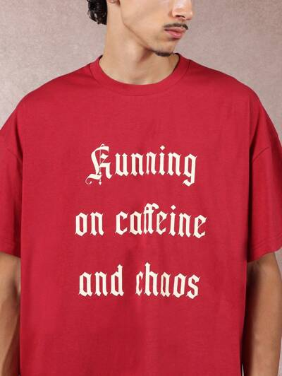 ゴシックテキストプリントのボックス型コットンジャージーTシャツ-40%