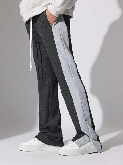 サイドパネルコントラストのフレアフィットスウェットパンツ-50%