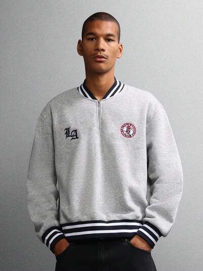 バーシティトリムとロゴディテール付きハーフジップスウェットシャツ-50%