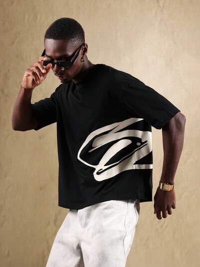 ストリートウェア グラフィック オーバーサイズ コットン Tシャツ-25%
