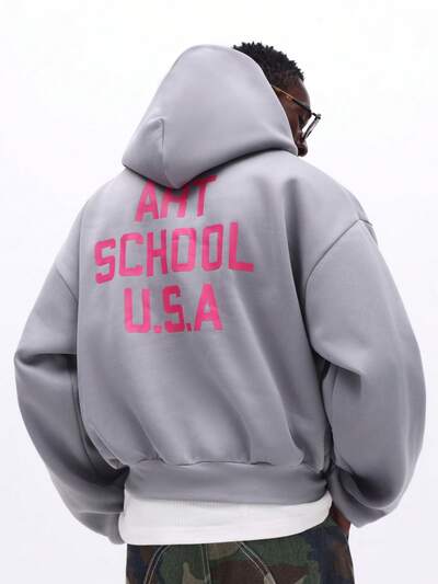 뒷면에 텍스트가 인쇄된 회색 후드 티셔츠-20%