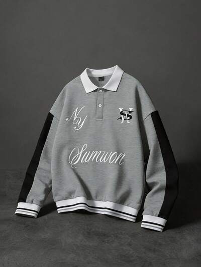 스크립트 자수가 있는 쿼터 지퍼 스웨트셔츠-10%
