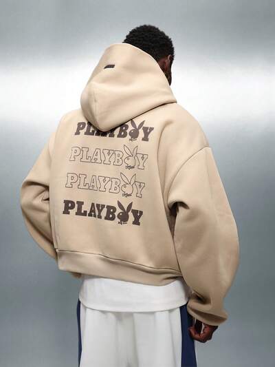 PLAYBOY X SUMWON 끈과 중앙 포켓이 있는 오버사이즈 후드 티셔츠-30%