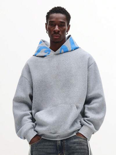 후드 로고 디자인이 있는 오버사이즈 플리스 후드 티셔츠-25%