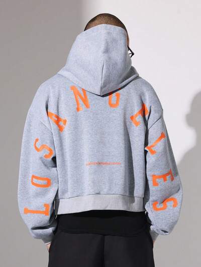 텍스트 프린트가 있는 오버사이즈 크롭 스트리트웨어 후드 티셔츠-50%