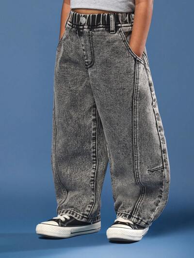 와이드 포켓이 있는 배럴 레그 애시드 워시 데님 진새로움