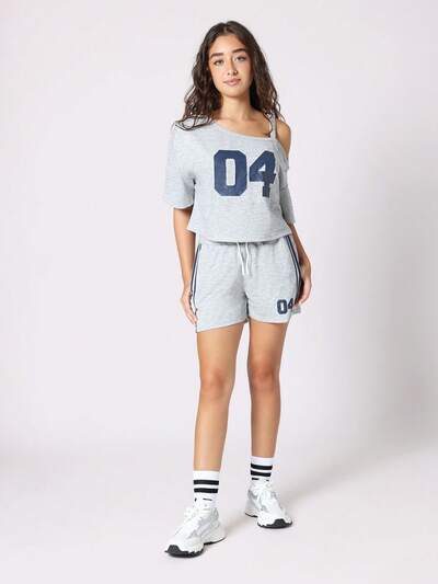 대학팀 번호가 프린트된 오프숄더 티셔츠와 반바지-50%