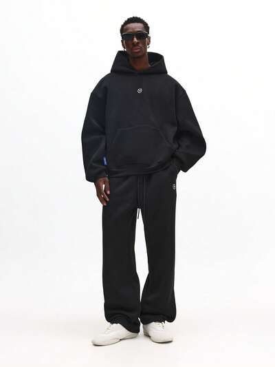 자수 로고가 있는 후드 티셔츠와 스웨트 팬츠 코디 세트