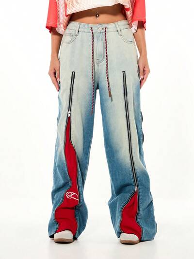 SUMWON WOMEN 레드 지퍼 패널이 있는 와이드 레그 진새로움