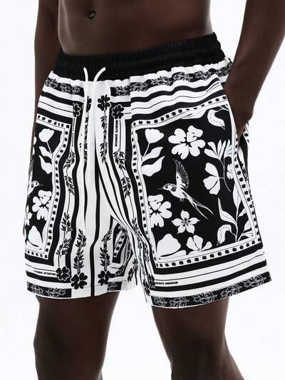 캐주얼하고 통기성이 좋은 편안한 보드 반바지화려한 거울 프린트 비치 세트와 줄무늬 수영복 하의