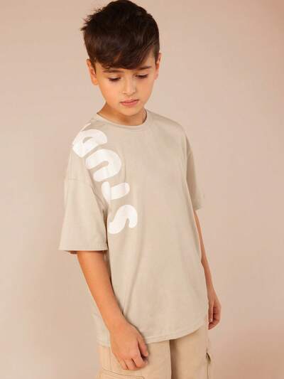 드롭 숄더 오버사이즈 스튜디오 텍스트 프린트 티셔츠