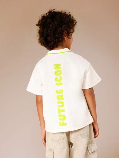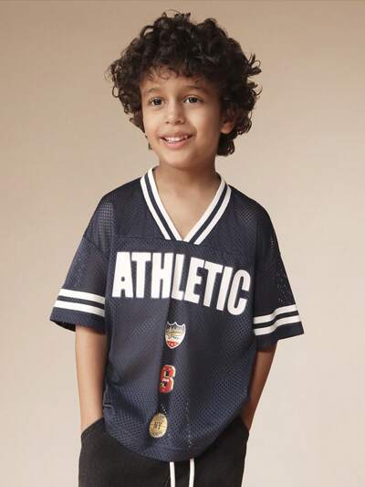 4세 보이 오버사이즈 한정판 그래픽 티셔츠, 텍스트 프린트 반팔 크루넥 캐주얼 여름 티셔츠-25%