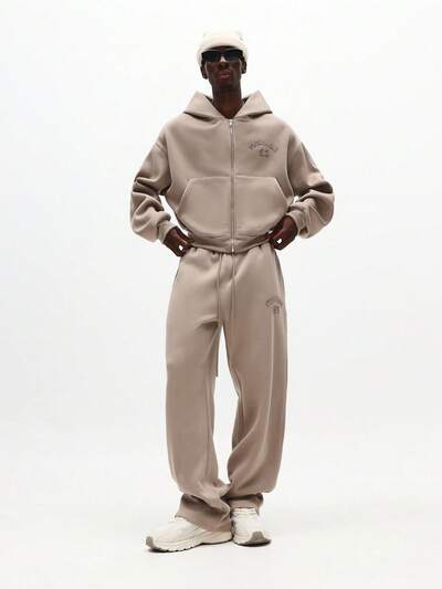 후드 코디네이트 세트와 와이드 레그 스웨트 팬츠-15%