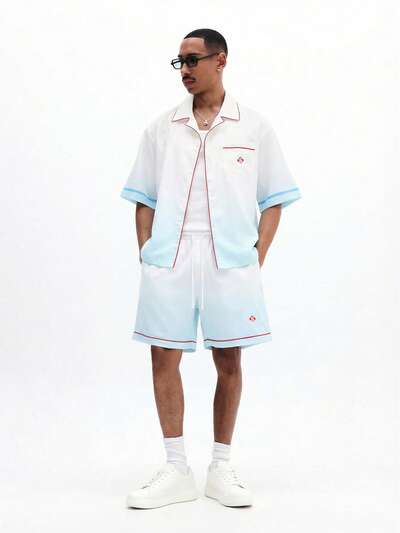 박시 핏 그라데이션 버튼 다운 셔츠 및 반바지 코디 세트 여름 휴가 의상 투피스 캐주얼 남성복 릴렉스 핏 컬렉션새로움