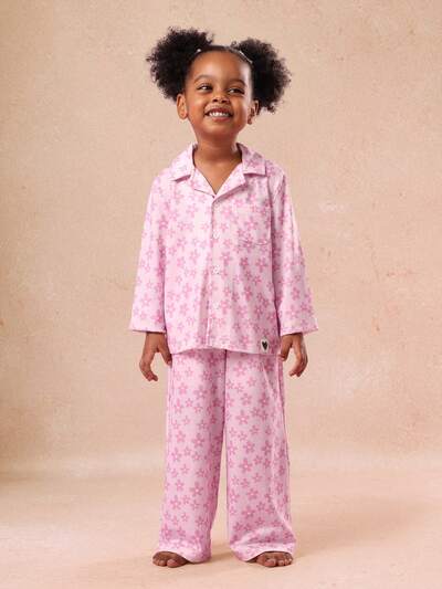 포켓이 있는 플로럴 프린트 버튼 다운 파자마 세트-20%