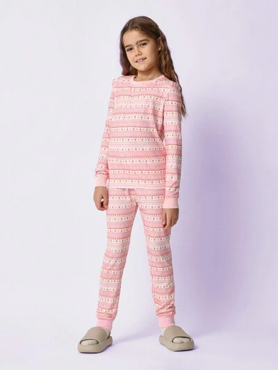 페어 아일 프린트 조거 팬츠 세트와 긴팔 티셔츠-50%