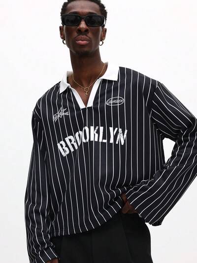 대조적인 줄무늬와 숫자가 있는 야구 저지 폴로-10%