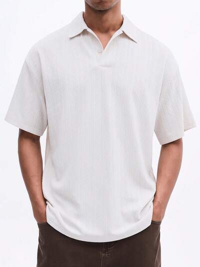 텍스처 반팔 폴로 셔츠 버튼 플래킷 칼라 여름 캐주얼웨어새로움