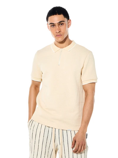 남성용 크림색 반팔 폴로 셔츠, 쿼터 지퍼 플래킷 포인트 칼라 레귤러 핏 저지 캐주얼 여름 상의새로움