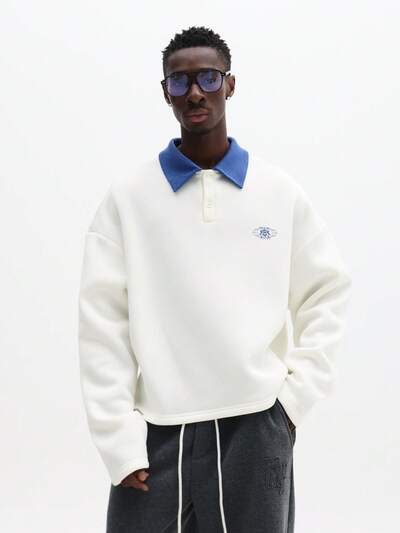 흰색 칼라와 로고가 있는 박시한 폴로 셔츠-40%