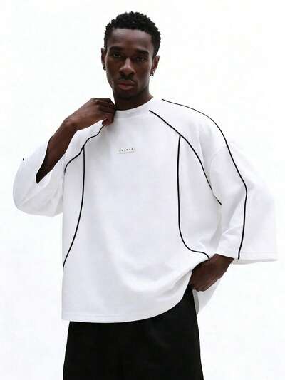 배색 파이핑이 있는 오버사이즈 크루넥 스웨트셔츠