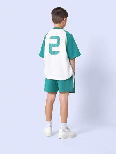 야구 스타일 라글런 저지 티셔츠 반바지 세트