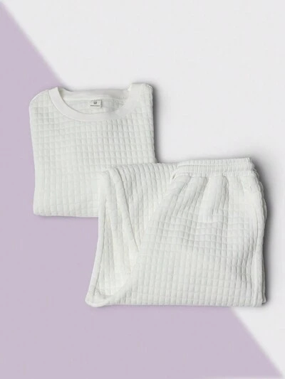 트윈 걸즈 편안한 퀼팅 질감 엘라스틱 밑단 크롭 스웨트셔츠와 조거 팬츠 2피스 세트-50%