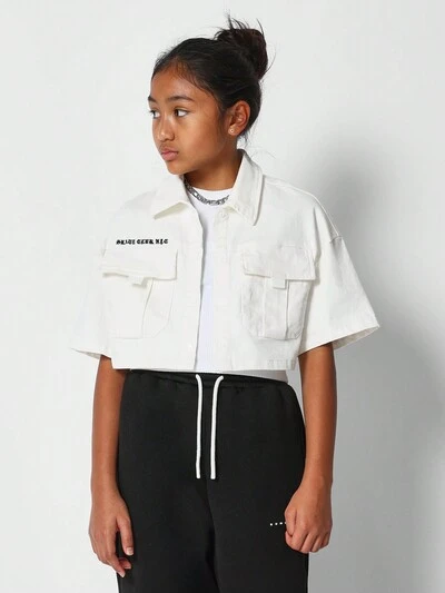 트윈 걸용 나일론 박시핏 셔츠, 백 프린트 포함-50%