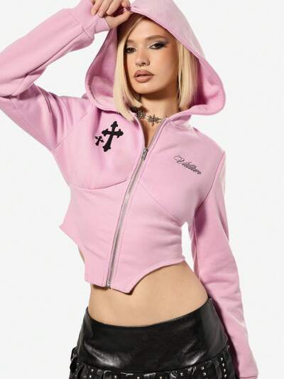 SUMWON WOMEN 그래픽이 들어간 할로윈 크롭 지퍼 후드 티셔츠-30%