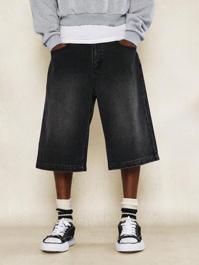 플러스 사이즈 카펜터 스타일 유틸리티 데님 반바지-10%