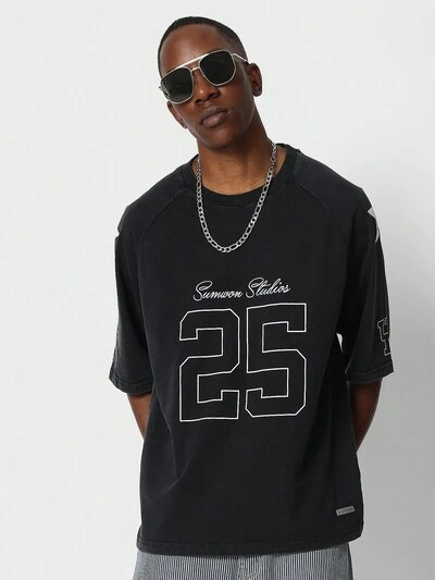 별과 숫자 그래픽 프린트가 있는 라글런 티-50%