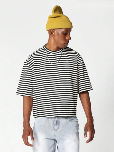 오버사이즈 지퍼 폴로 시어서커 세로 스트라이프 반팔 셔츠-30%