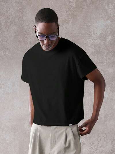드롭 숄더가 있는 박스형 핏 크롭 저지 티셔츠