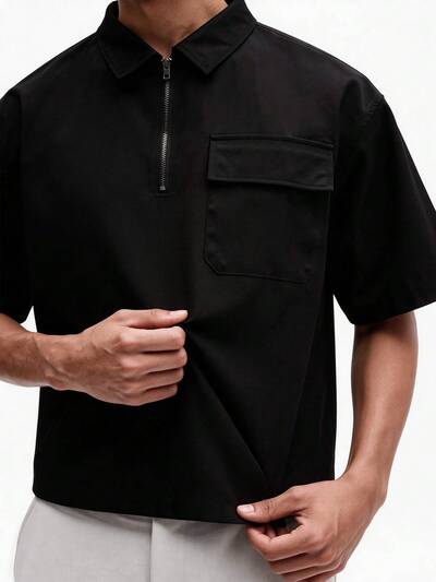 Oversized V-Neck Short Sleeve Fitted Polo