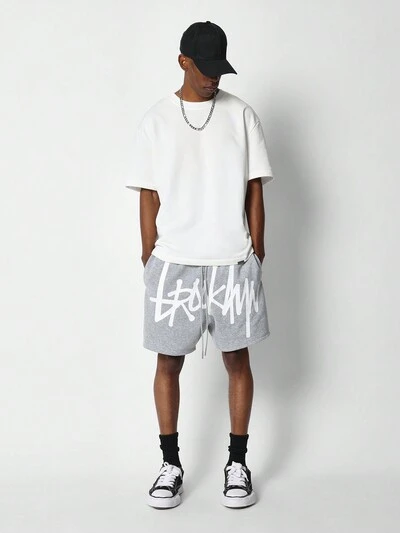 Drop Crotch Short With Front Graphic Print-15%