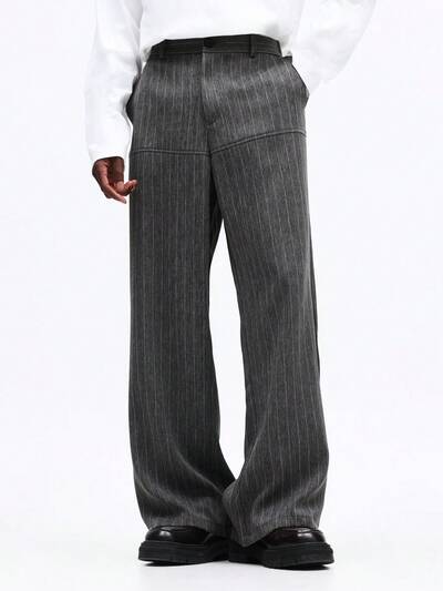 Essential Muscle Fit T-Shirt With Embroidered LogoWide Leg Pinstripe Dress Pants With Elastic Waist