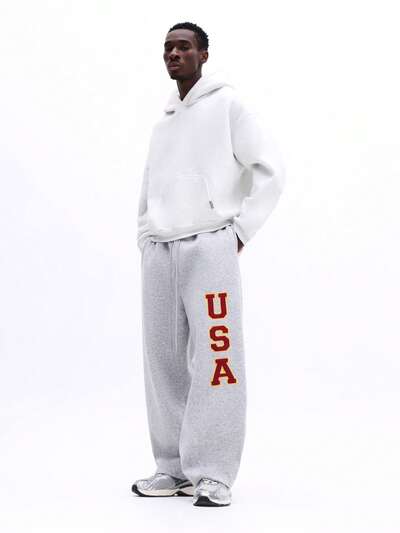 Sweatpants With USA Leg PrintPLAYBOY X SUMWON Black Oversized Paneled Sweatshirt With Logo