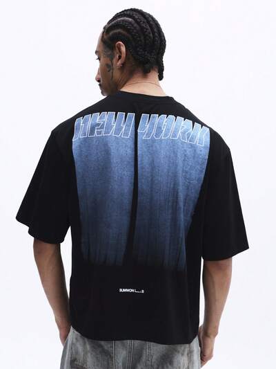 Black Mesh T-Shirt With Logo PrintOversized Graphic Print Crew Neck Tee
