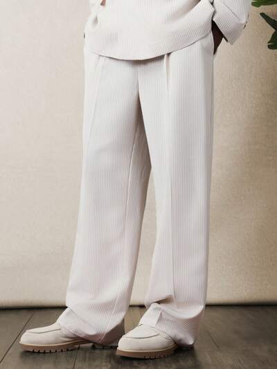 Ribbed Knit Straight Leg Suit Trousers