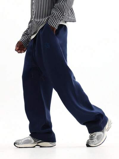 Wide Leg Pleated Embroidered Sweatpants With Side Pockets-10%