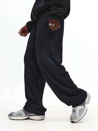 Textured Diamond Pattern Straight Leg Pants With Elastic Ankles-30%